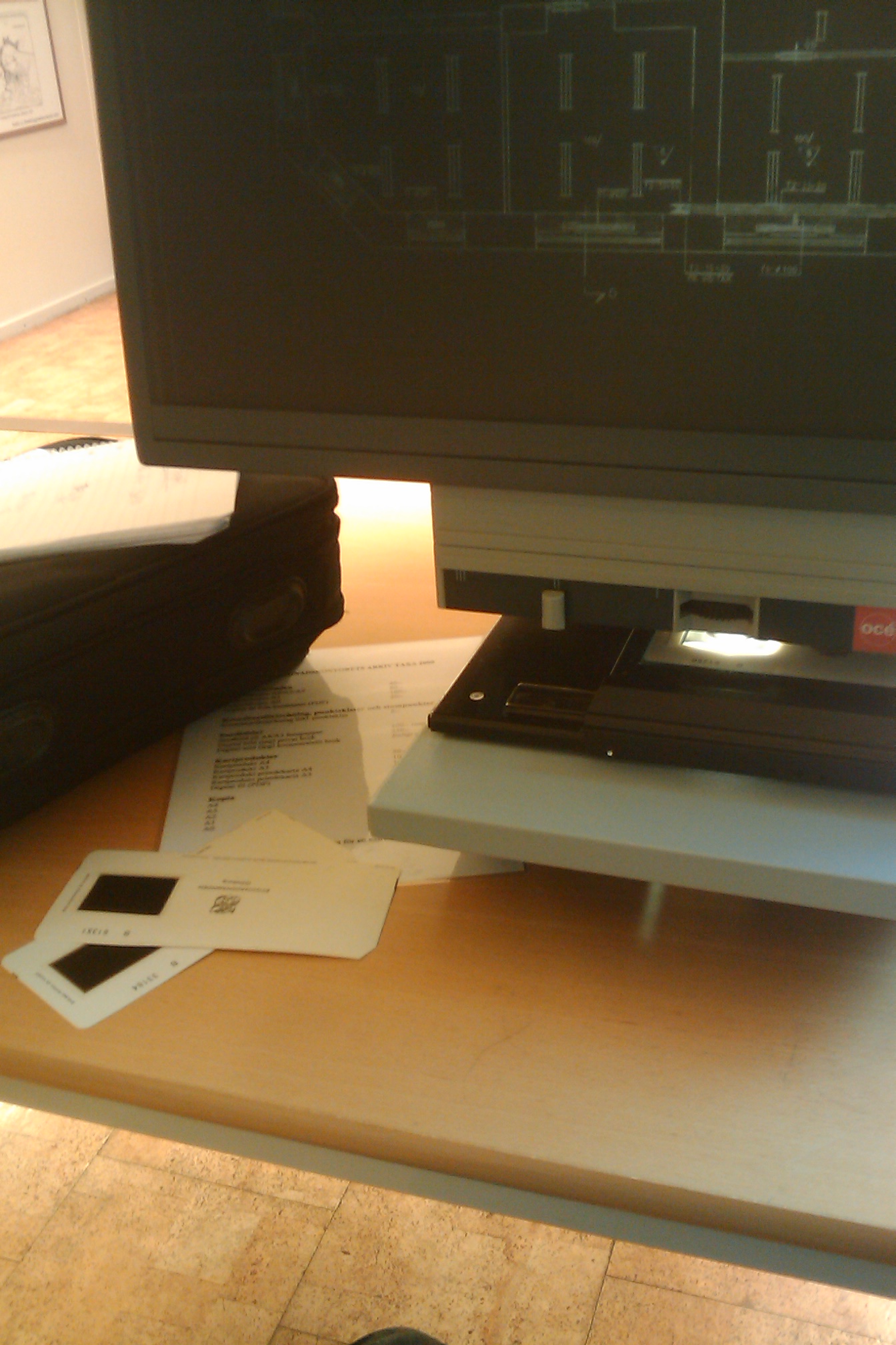 Jag har besökt arkivet ganska regelbundet i tjugo år och blivit lite skadad. Jag har slutat klaga på att allt ligger på mikrofilm. Ett ålderdomligt system med maskiner som säkert var nya när arkivet öppnade någon gång under andra världskriget. När allt annat finns på nätet, CD-skivor och fotoalbum är hopplöst ute, vi mailar och läser ritningar kors och tvärs med våra telefoner – då är det här nästan overkligt gammalt.