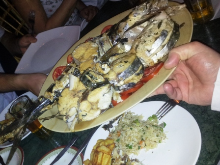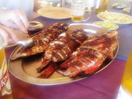 Den fisken var också helt otroligt ok. Det var på kvällen, då fick vi Kingfish och svärdfisk. Grillade. Förstås.