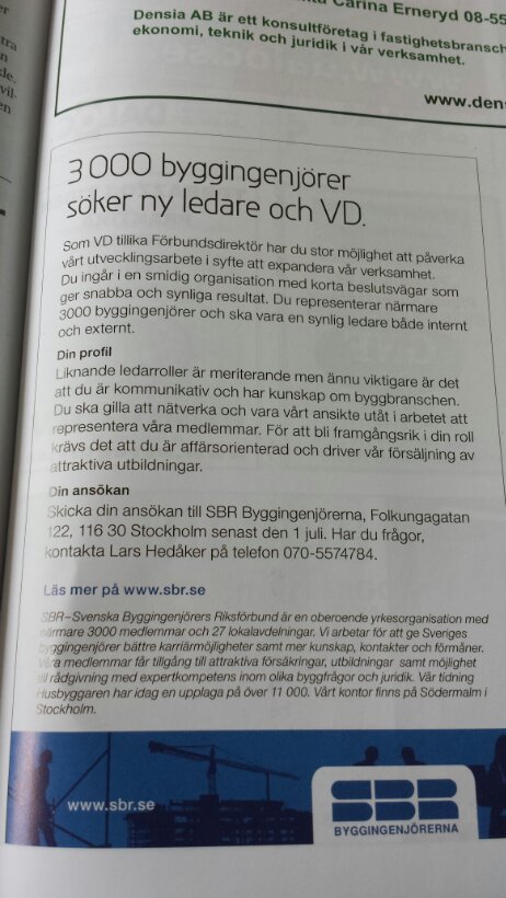 Som inhyrd platschef skulle jag bygga ett hus mitt i centrala Göteborg 1999. Projektledaren var en något åldrad man med en ännu äldre inställning till saker och ting. Han fick alla protokoll förstorade till A3, sen läste han dem med hjälp av förstoringsglas.