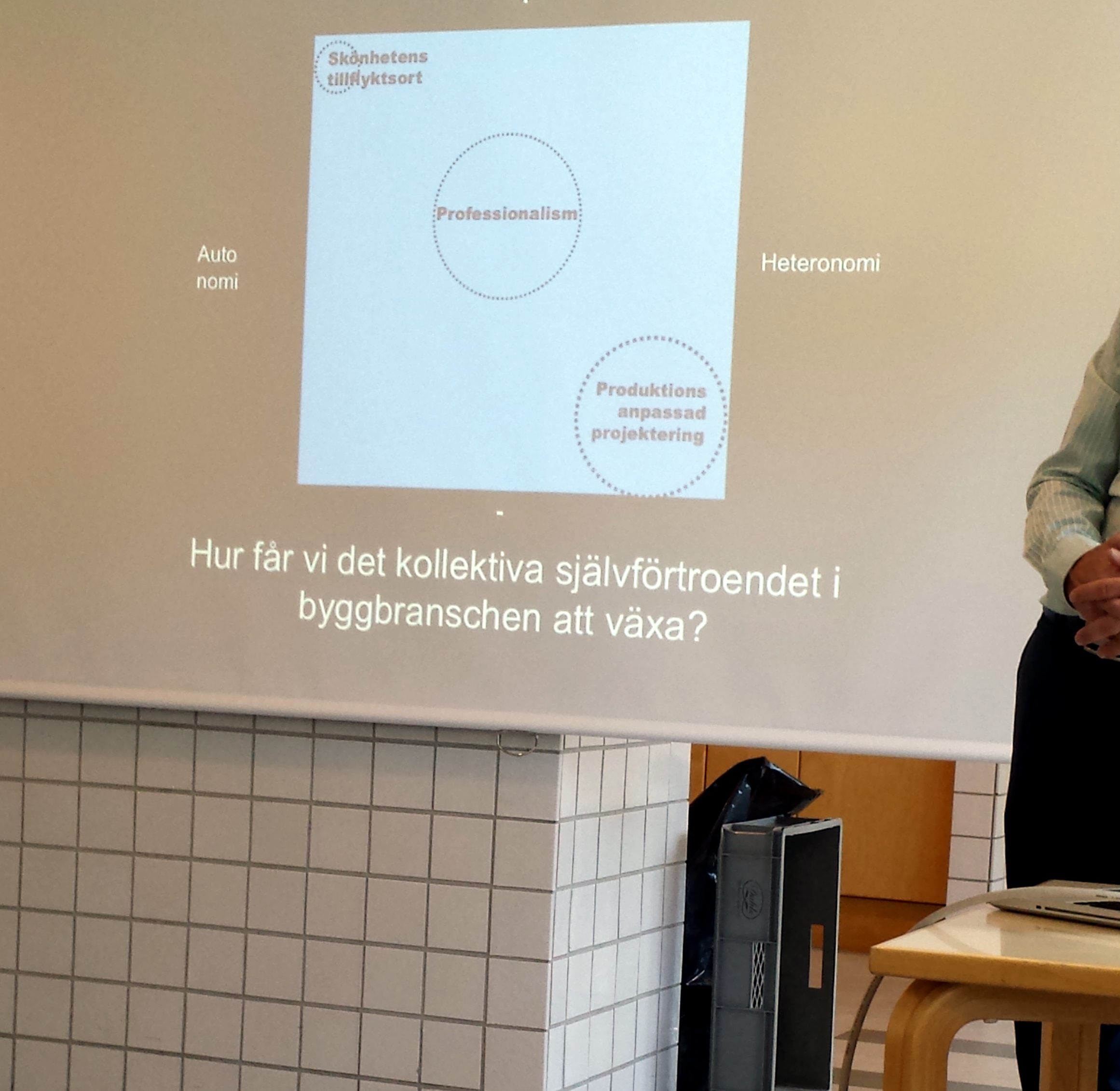 Denna gången var det arkitekturprofesser Claes Caldenby som pratade om sitt imponerande, trägna arbete under många år. Han berättade om hur arkitektens roll förändrades i slutet på 60-talet och början på 70-talet. Detta är påtagligt i Sverige men märkligt inte lika tydligt i motsvarande länder i Europa.