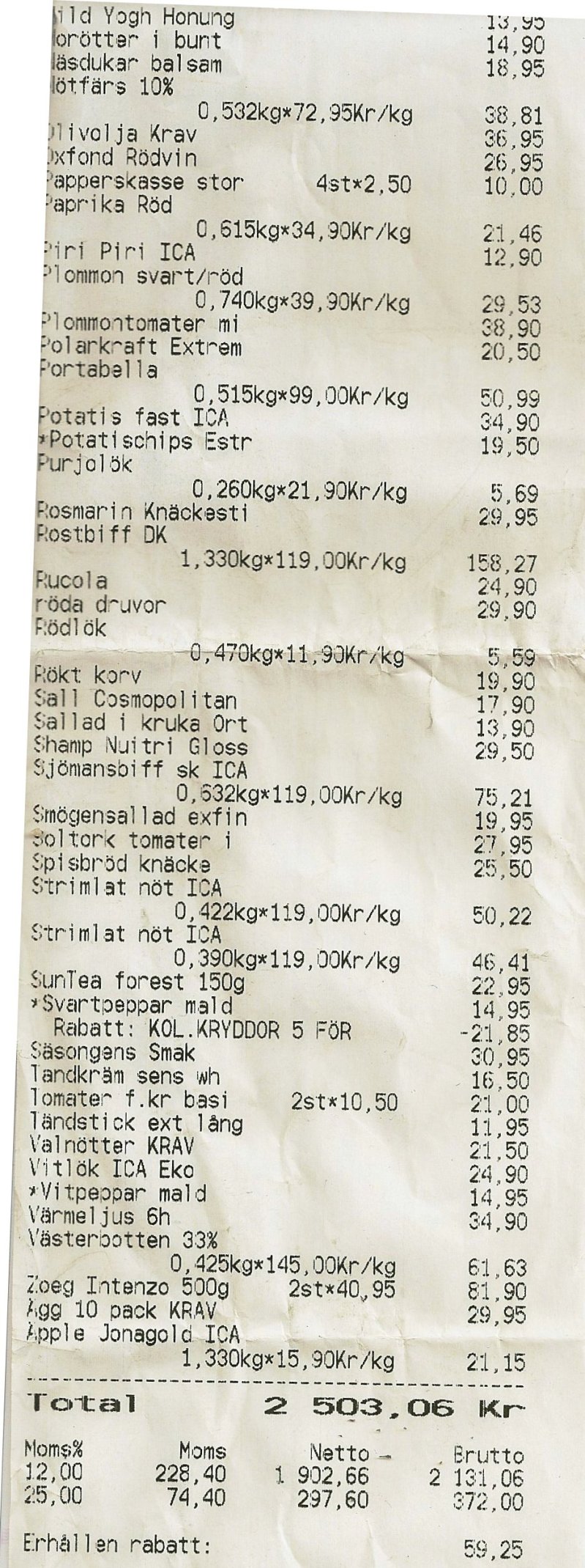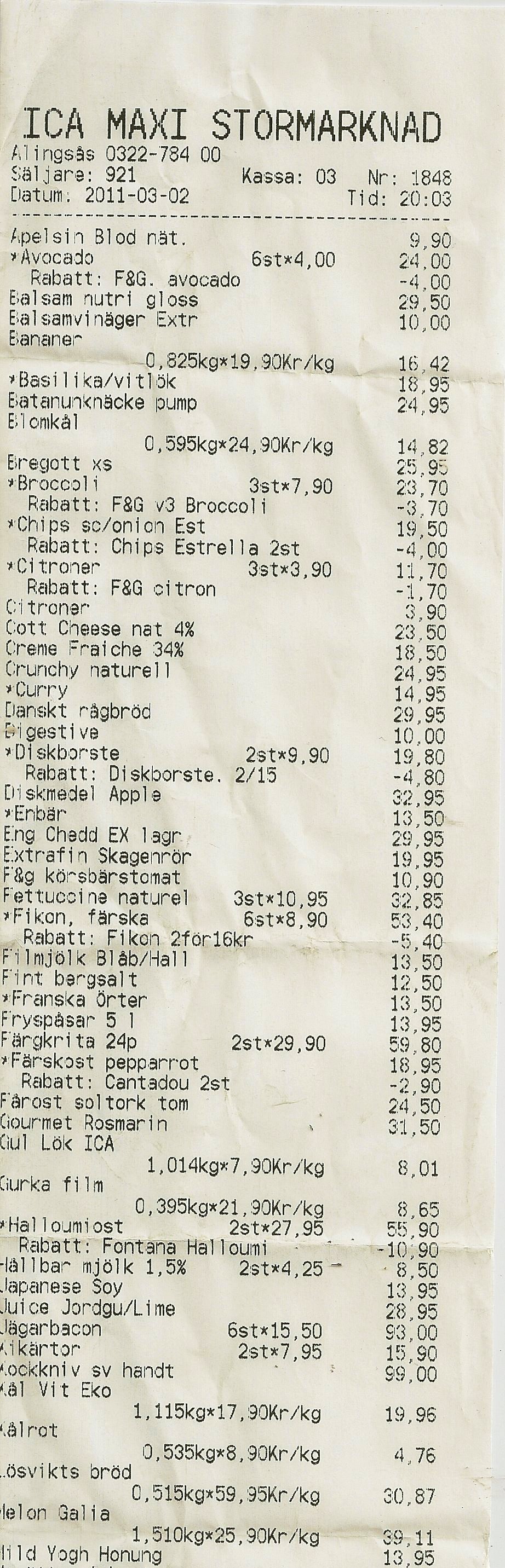 Vi har ju visat det vi käkade första dygnet.