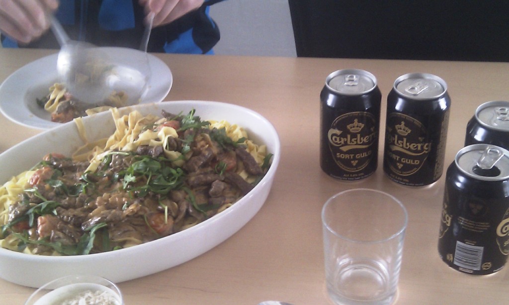 Till lunch fick vi rester från gårdagen plus några köttfärsbiffar. Till fick vi kaffe och skidstafett. Sen blev det promenad.